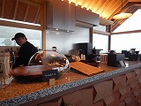 お店は窓辺に向かったカウンター形式のレイアウトです。裏山は日立から鹿嶋あたりまでの地平線が見渡せるパノラマが抜群の風景で、お店のすぐ下には山桜の林が日がっているのです。