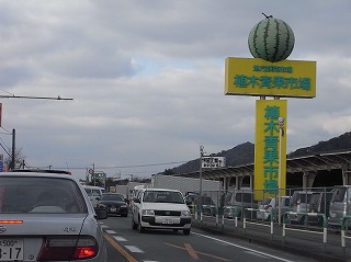 鹿島灘方面のメロンと同じような看板でしたが、ここはプロの人向けの市場で休日で、スイカは食べられませんでした。そもそも2月だし。