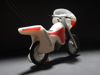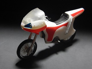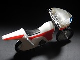 しかしサイドカウルの両側を見ると、立花レーシングのあのエンブレムも無い。ところがヘッドマークは赤と青のラインで描かれた流星マーク。これは国際科学警察機構日本支部に所在する「科学特捜隊」のエンブレムだ。