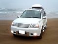 白ツートンのV6−2000と言えば、もうベストセラーかとも思える95年式ゴールドウィンのノマドの代名詞。そのスタイルを維持しながら、フィンタイプのルーフエンドスポイラーやリアウインドゥのサンシェードなど、小粋なおしゃれに、はっと気づかされる。 ドライバー:Kawaさん |