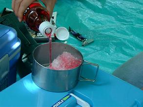 | かき氷を食いたいぞ。という季節ですんで、剛力2号を投入。旧型の1号は専用皿で製氷しないと氷をかくことができませんでしたが、2号は今風にバラ氷にも対応しているので、ロックアイスでもぶっかき氷でもガリガリと削れます。剛力てのは、要するにかき氷機のことです(これだって充分に野暮ったい名前だよな)「味付けはイチゴとブルーベリーと練乳とカルピス(原液)がありますっ」 「な、なんですか。そのカルピスって???」 「題して初恋の味だ。文句あるか」 いや、ほんとに美味いんです。実際、消費量ではイチゴに打ち勝っております。 |
