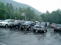 | 今回、反則技の極みという「突然お知らせ、とりあえずツーリングしてくるわ」な、それだけでも周囲からはクレームの嵐となった『つくばーど』でしたが、静岡からTD01Wくろかんノマドのだいすけさんが、乗鞍高原にスキーには来るけれど、スカイラインには登ったことがないということで同行してくれました。 たぶん最後の乗鞍スカイラインツーリングはあっけなく終わり、乗鞍高原まで下って、だいすけさん紹介の温泉につかり、 「このあとはどうしますか?」 「雨が降ってきたけれど、野麦街道から月夜沢峠へ入ろうと思うの。単独だったら行かないけれど、だいすけさんとチームなら心強いんでね」 「月夜沢ですか。僕も行ったことないから行きたい」 と打ち合わせして奈川村側の野麦街道へ、乗鞍スーパー林道A区間で移動。つくばーどの林道ツーリングの本領に移ります。 |