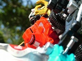 世界各地で失われつつある貴重な秘宝を収集するサージェス財団は、古代文明の遺物、沈没船や秘境に残された財宝、滅亡寸前の動物まで様々な地球文明資源を保護している。 そのなかで、現代科学水準を遥かに越えた危険な力を持つ「プレシャス」は、サージェス財団にとって第一級の捕獲ターゲットだ。プレシャスをねらうネガティブシンジケートの暗躍も活性化しており、財団は直属の戦隊を組織した。それが轟轟戦隊ボウケンジャーであり、彼等は専用のゴーゴービークルを合体させ、全高50mを超えるスーパーダイボウケンで、プレシャスの捕獲にあたっている。 その日、財団から特命を受けたボウケンジャーは、超巨大な樹木に覆われた森の中で、巨大な円筒状の物体を発見した。 これぞ、ひとつで20万7000食分の非常用保存食をまかなうと言われている、あの世界的に有名なアレである。現在、確認されているものは、茨城県取手市の民間工場に展示されているが、中身は何者かに食されたあとのカラのものとして発見されたため、その工場では煙突の煤煙除去装置を内蔵したオブジェとして取り扱っている。 (一応断っておきますが、このお話はフィクションであり、登場する人名や地名、団体名などが実在しても、一切関係ありません) ボウケンジャーが発見した円筒は、まだ開封されていない貴重なサンプルだったのだ。彼等はこれを回収するため、9台のゴーゴービークルをスーパーフォーメーションし、スーパーダイボウケンに合体して、その場から持ち帰る作業に取りかかった。 だがそのとき、スーパーダイボウケンをもゆるがす地響きと突風が吹き荒れ、さらに巨大な影が彼等の前に立ちはだかった! 「うりゃ、そこでなにをしている。それは俺様の食い物だぞ!」 |