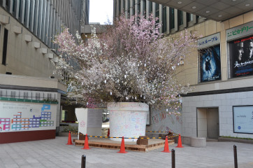 早朝のルミネには人通りもなく、いつまでも花の彩りを見上げていたくなるようでした。ここへ追いつく桜前線もあるだろうし、すでに追い越して行った前線もありそう。それほどにたくさんの品種が咲き乱れているのですが、復興を願う人々の思いはひとつに寄り添って、全線と共に北を目指していくのだろうと考えさせられるひとときでした。