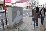 この通りに面したところに、あの円谷英二さんの生家が所在することから、須賀川はゴジラやウルトラで町おこしを図った経緯があり、松明通りに点在するCABボックスには、怪獣や宇宙人、ウルトラメカニックが約50体強、ウルトラシリーズのオープニングよろしく、影絵仕立てで描かれています。
