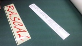 屋外広告用の高耐候性カッティングシートを使用するが、切り文字1個ずつはきわめて細いことから、糊のくいつきを確保するため貼り付け面をベンジンで軽く清掃し、位置決めしたマーキングを当てていく。