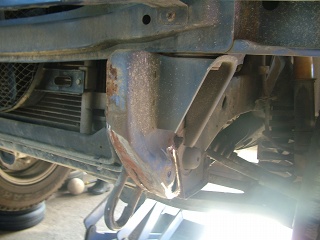 下回りについてはオイル交換などの際に点検を繰り返していたのだけれど、前部サイドフレームの先端は、フロントエクステンションバーやスキッドプレートなどの構造材に隠れて見えなかった。