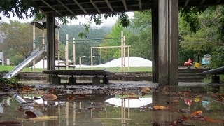 10時、湖の様な公園に到着。全く人の気配がありません、水溜りだらけで池からは川のように水が溢れてます。