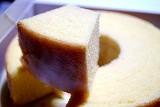 開店当初は「なぜこんなところに?」と思われたりしたそうですが、茨城空港が開港することで、人の往き来に変化の出る、そのくせ「お店はどこ?」と探し出す楽しみの持てる、ユニークな立地。バームクーヘンといえば、バター、鶏卵、砂糖、バニラ、マジパン、ラム酒、水などで生地を作りますが、小美玉市は良質な鶏卵生産地でもあり、おいしさの秘密のひとつのようです。 |