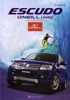 1989年からほぼ絶え間なくリリースされてきたヘリーハンセン・リミテッドに代わって、夏物の特別仕様はカリフォルニアテイストのO’Neill(オニール)リミテッドの登場となった。このブランドは、1952年にサンフランシスコで世界最初のガレージサーフショップを開いたジャック・オニールを起用したものだ。 波乗りがまだマイナースポーツであった時代、ウエットスーツというものは存在せず、波に挑んでいられるのは僅かな時間であったという。冬場は日に1本か2本の波にしか乗ることができず、砂浜で起こした焚き火から離れることができなかったのだ。オニールは断熱材の使用を思いつき、払い下げ軍用のゴム製潜水服を試すが耐久性に乏しく、実用には向かなかった。 彼はその後フォームラバーにたどり着き、ウエットスーツの原点になるものを誕生させ、さらにネオプレーンゴムを使ったスーツを完成させる。徐々にカリフォルニア中のサーファーに広まっていった。オニールは後に拠点をサンタクルーズに移し、60年近い歴史を歩んでいる。カタログでは「サーファーたちへ」とうたっているが、O’Neillはスノーボードなどウインタースポーツ分野でも知られている。するとこのエスクードは、夏冬兼用でイメージを活かせるリミテッドとも解釈できる(現に寒冷地仕様だ) ただ、特別仕様のコーディネートを見ると、2008年版サロモンリミテッドとそう変わらない。電動サンルーフは定番となったが、ルーフレールはオミットされた。ESPは搭載されている。これはカタログモデルではメーカーオプション。 |