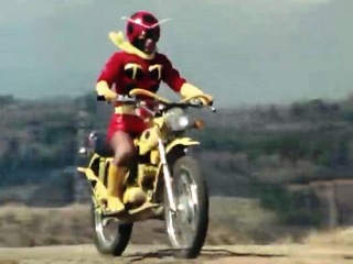 どこをどう押したり引いたりすればこの車体に前後輪が格納できるのか、当時は大いに悩まされながらも腕が伸び脚が動いて2足歩行に転じるというギミックには理屈ではないかっこよさを認めてしまったマシンザボーガーも、中身はハスラーであったという。リメイクされた方はヤマハの車両が使われている。 |