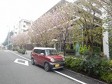 目的地近くまでやってきたものの、どの建物なのかがわからず路上駐車してナビで住所検索していると、さすが東京は暖かいのかもう3月も終わるからなのか、桜並木が五分咲きくらい。