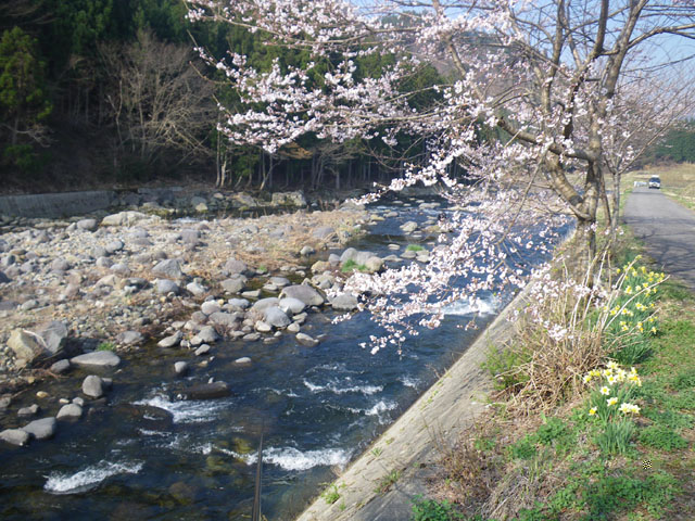 4月12日、岐阜県郡上(高鷲〜白鳥)へ渓流釣りに出かけました。初夏を思わせるような陽気と、例年より10日以上早く咲いた桜が満開で、 楽しい釣行ができました。 お目当ての岩魚は29cmほどで「泣き尺」ってところですが、 三重県宮川上流では見られない”幻の魚”なので、大変満足でした。 糸は0.2号フロロ通し、エサは現地採集の川虫(ヒラタ)でした。 |