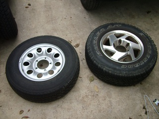 1600ノマドのユーザー、かーたさんがエスクードからミニバンに乗り換えることとなり、シン大尉のENCOUNTER02にて、パーツの引き継ぎが行われた。ぷらすBLUEはそのとき、まだ納車されていなかったため、15インチホイールとタイヤを何に使うのか? と物議を醸したとかしなかったとか。 その15インチホイール(エンケイ:発売元、キョーホー)と、デューラーAT693(右)、純正ホイールとデザートデューラー682(1991年当時のもの)との大きさの違いは、歴然としている。さすがに682はスペアタイヤのみで、実際に履いているタイヤはデューラーH/T684の純正サイズ。具体的には以下の寸法差がある。 H/T684 サイズ195/80R15 96S 外径688mm タイヤ幅204mm A/T693(693のサイズ一覧がなかったので、694で比較) LT215/75R15 100/97S 外径712mm タイヤ幅218mm |
