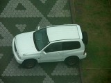 うろうろしつつ裏に駐車場発見! 展望室よりなかなかできない愛車の上からのショットを1枚(光学10倍ズームが活躍)」