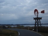 アメリカ的なデザインと機能の風車が、関東平野の原風景にもなじむというのは、空の色と羽根のオレンジとのコントラストが映えるからでしょうか。