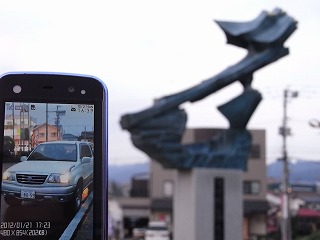 何か町を挙げてのイベント中らしく、オブジェの前はズラッと車が駐車中。