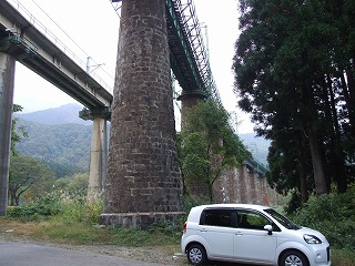 途中で、横は通過するけど(高速でね)行った事のない線路の下へ寄り道。 あんぐり口開けて見上げちゃいましたわ。 「電車通らないかなぁ」と時刻表確認したら、40〜50分待てば(ここでか