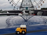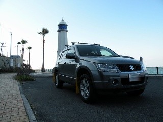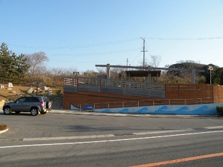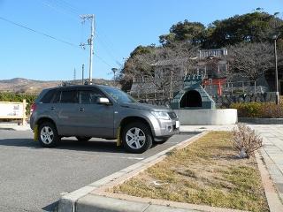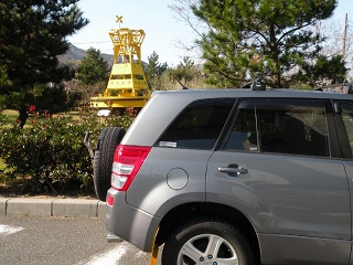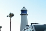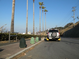 そこにはヤシの木とさかなのモニュメントがお出迎え。 |