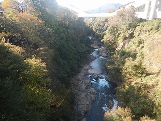 今回の漂流は、松井田から長野原に向かって八ッ場ダムまで走り、そこから渋川へ下って帰路につくルートを組み合わせている。 「アルカディア」から少し移動した街道に寄り添う増田川の一角に、「らせん式魚道」という変わった構造物がある。一石二鳥でここにも立ち寄りたかったのである。 元々は1958年に完成した上木馬瀬砂防堰堤に、耐震補強を施しながら2006年に追加されたのがこの魚道だ。全国各地に所在するそうだが、関東地方だとここと埼玉県の二か所しか事例がない。 農業用水に活用される円筒分水とは用途も規模も異なるが、土木技術者の叡智は面白いものを作り出す。 このまま地蔵峠を越えて倉渕村経由で長野原町へ移動する。土木構造物の代表格ともいうべき八ッ場ダムを眺めるも、まだ紅葉見物には早かった。源頼朝が拓いたといわれる川原湯温泉の源泉を見物した後、昼食に八ッ場ダムカレーというのも芸がないなと考えていたら、八ッ場ラーメンを見つけた。塩、しょうゆ、豚骨のうちしょうゆを注文する。細打ち麺は好みだ。面白いのはあっさり系のつゆが食いはじめと食い終わりで若干味が変わる。 八ッ場ダムの今年の夏は過酷だったらしく、満水時の14%まで水位が下がったとか。台風15号以来少し解消したそうだが、ここが存在しなかった場合、利根川水系下流域には取水制限が出されたかもしれないと、ガイドが説明していた。 橋の上から見下ろすと、吾妻峡の渓流は元気よく流れているように見えた。 |