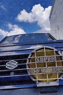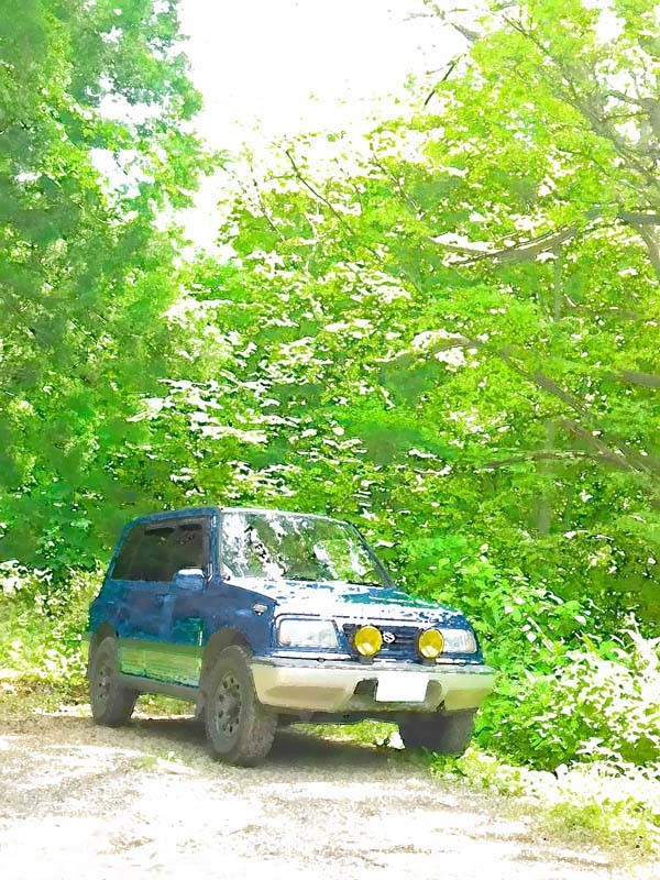 陽光と新緑とノマドのコントラストで夏の風景を描いてくれたsuuuさんは「僕のクルマだと黒い車体で涼しげでないから、青くしちゃいました」と大胆な編集。