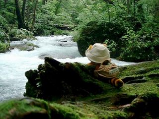 | 《つくばーど in 青森》 8月29日(金) ゆくぞみちのくに。で、青森県奥入瀬渓流にやってきた。 秋田県側の大湯から、十和田湖を見下ろす発荷峠への上りにも、大湯川の渓流がある。そちらは自然の生態系の変化によって下草が生い茂り、風光明媚な渓流とは言い難い。 そういった対比を持ち出すまでもなく、奥入瀬渓流は絵になる美しさを持っている。 十和田の噴火による火山岩と火山灰によってできた奥入瀬の地形・地質では、下草が生い茂ることはなく、朽ちた樹木は朽ちたまま、渓流の景色にとけ込むのだという。 水面との高低差数十センチというところまで、国道が迫っている渓流に、これだけの美しさが整っているところは、全国的にも数少ないかもしれない。2キロほど、クルマを置いて歩いてみて、つくづく思ったことは、「マイカー規制には反対だ」ということだ。 乗鞍スカイラインと同じである。ここをこのまま残しておこうというのであれば、マイカー以外の内燃機関を持つ全ての車両もシャットアウトすべきなのだ。 それができない理由はないと思う。できないなら、規制をすべきかどうかは疑問なのだ。たとえばここを下りのみの一方通行にして、新規に開通するバイパスを上り専用にするという手法を講じてからでも、遅くはない。 しかしそれは通らない理屈だろう。 その上で、環境保全を高飛車に打ち出すよりも、渋滞して危険だから規制するという、町の言い分は、方便としてわかりやすく感じた。 早朝の平日、人のいない奥入瀬を贅沢に楽しんだ。 それが運命のすれ違いの始まり。 まさかその直後、あの白いロードスターがこの場所に現れるとは思いもよらず、僕らは102号線をあとに八甲田に向けて移動を始め、しかも103号線からもはずれた裏道で田代平に抜けてしまうのである。 |