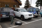 天狗の森を撤収する間際に、初代エスクードの15インチホイールは、2代目に使えるのか? という実証実験をやりました。TA02WやTA52Wとは、共用が可能のようです。TL52Wだと、ディスクローターもキャリパーも大型化されていて、無理。新年会だバレンタインだと言いながらも、やっぱりエスクードのイベントなのです。