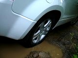 コーナーを回っていきやすい。泥の中に浮いている丸太を踏み越える際に、前後ホイールともずるずると滑ることがない。少なくとも、クロスカントリー走行を必要としない林道にあっては、下回りをヒットしないか? 道幅は確保できるか? といった面の方が重大要素になっている。凍結路、積雪路では条件が異なってくるが、低速走行を続けている間は、LSD内蔵センターデフやESPが、それとなくサポートを繰り返し、スタックを実験することも出来なかった。