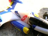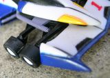 スーパーアスラーダは、2016年シリーズからバージョンアップ型のSA-01/C(写真上段)が登場したが、他チームのニューマシン攻勢に追随できず、第5戦イギリスGPまでの戦歴で現役を退いた。 第6戦タンザニアGPでベールを脱いだのがAKF−11(ダブルワン)。翌2017年第5戦イギリスGPまでをチーム・スゴウアスラーダが、2018年第5戦フランスGPから2019年第12戦オーストラリアGPまでをチーム/スゴウウィナーズが使用した、息の長いマシン(写真下段)として有名。 スゴウアスラーダ時代には、デビューウィンを含む2勝を獲得し、チャンピオンマシンに輝いた。チーフデイナーは、風見広之の下でアスラーダの開発に携わったクレア・フォートラン。彼女のサイバーフォーミュラデビュー作でもある。 SA−01シリーズとの相違点は、サイバーフォーミュラのレギュレーション変更で、ラリーモードが廃止されたことだ。複雑な変形システムを省略でき、制御系への負荷が軽減された。大きく変わった部分はリア周りで、ブーストポッドが両サイドへ移され、同時にカウル形状を変えてエアロダイナミクスの向上と低重心化を進めた。2017年シーズンは開幕4連勝のあと、イギリスGPで大破。ドライバーの風見ハヤトも重傷を負い、一時的に戦列を離れた。最終戦では6輪駆動システムとの交換条件で、ライバルチーム・ユニオンからエンジンの供給を受け、優勝を遂げる。 |