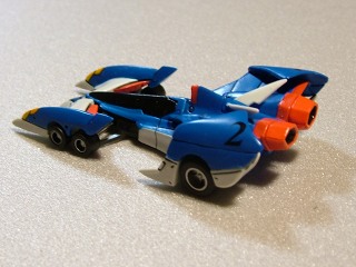 サイバーシステム・アスラーダは、他チームが搭載するシステムとは比較できないほどの高性能さを有していたが、厳重なセキュリティプログラム(ガードシステム)によって、ただ一人のドライバーしか登録することができない。2017年イギリスGPで風見ハヤトが重傷を負ったことをきっかけに彼が引退、スーパーアスラーダも封印された。 新チーム「スゴウグランプリ」が発足した2018年、監督に菅生修が就任。後進のドライバーアンリ・クレイトーの専用マシンとしてSF−01ガーランドを完成させた。ガーランドの基本設計は、可変システムを排除し、大幅な軽量化を図った。ブーストポッドも内蔵型に変更。リアウィングの位置を下げ、低重心化が図られている。サイバーシステムは標準的な仕様が組み込まれており、誰にでも扱える汎用マシンであった。 アンリは4戦目で初優勝、シーズン中3勝を挙げ、年間ポイントにおいて総合優勝を果たす。風見ハヤトは第5戦からレースに復帰し、AKF−11でセカンドチーム「スゴウウィナーズ」に所属した。 この頃、他チームのニューマシン攻勢も激化しており、2019年シーズンでマイナーチェンジしたSF−02は、開幕戦で2位を獲得するに留まる。ガーランドは新型シャシー、エンジンを導入したSF−03となり、ブーストが展開型に変更され、エアインテークを小型化、スタビライザーを後方へ移した。リアウィングは内側へ湾曲させ、先端を前方へ突き出すことで清流効果を向上させている。ハヤトもスペインGPまでSF−03を使用したが、サイバーシステムとドライバーのコンビネーションという、サイバーマシンの神髄に目覚め、ν−アスラーダAKF−0に乗り換えた。 |