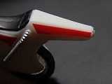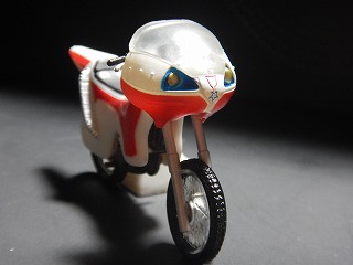 しかしサイドカウルの両側を見ると、立花レーシングのあのエンブレムも無い。ところがヘッドマークは赤と青のラインで描かれた流星マーク。これは国際科学警察機構日本支部に所在する「科学特捜隊」のエンブレムだ。