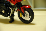 人型とオートバイの2形態を有しており、スイングアームが両腕、テールカウル内に両脚が格納されている。驚くべきは構成素材で、タイヤはホイールごと伸縮してしまう。