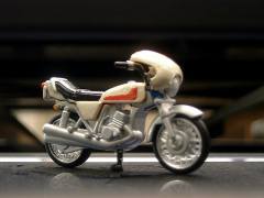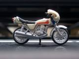 というわけで04年4月、キャラウィール・アルティメットエディションの、さらに「ハイパーホビー誌」企画による常用サイクロンと本郷猛が、上のものです。 実はテールカウルの形状を我慢するか、改造すれば、一般販売の8人ライダーマシーンに標準で入っている改造サイクロンのフロントカウルを取り払っても、この仕様にできます。 本郷猛のフィギュアとテールのデザイン変更が、メーカーとしての良心だなあ。 改造に関しては自己責任でやってください。 |