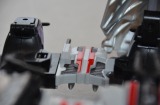 | 基本的にはライドマッハーがイニシィアティブを有しており、ライドチェイサーが同調して並走連結するシステムのようだ。 開発者が何を思ったのかは定かでないが、連結機構を持つ以上2台は同時に開発されているはずなのに、四輪時には1人乗りスペースしか確保されない。 もう一人が騎馬ろしく装甲上に立つという戦方もありそうだが、操縦者の視界の妨げになるため、クロッシングアーマーの後方のどこかに足場を確保するしかなさそうだ。 このマシンの斬新なところは、バイク形態が連結した状態からは前後方向が逆転することで、搭乗者は2台の間に出現する操縦ブロックに、バイクとは反対側になり半分仰向け状態で着座することになる。 制御機構の中枢部がバイクのフロント側に集中するため、これをある程度防御する必要上からの措置と思われるが、駆動系はバックギアが前進を促す形となる。問題はどうやって舵をとるのかという点だが、おそらく駆動輪へのトルク伝達を左右それぞれ変えることで無理やり曲げる制御と、その補助機構としてバイク時の前輪舵角が4WS的な切れ角を持つのかもしれない。 |