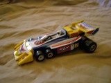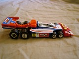 ここへきて、トドロキスペシャルのウイークポイントが顕著化する。後輪のダブル・トレッドレイアウトは、テクニカルサーキットやレインコンディションはともかく、高速走行には不利なのである。 イタリアGP、モンツァのレースに備え、後輪を前後たて配列にアレンジしたT−3が完成する。リアトレッドはシングル縦配置となり、T−1よりも225mm狭められた。 トドロキスペシャルT−3は、モンツァではリタイアしたが、待望の富士スピードウエイ・日本GPでは遂に優勝を果たす(ここで突然、チームSVEの存在は無かったことにする) T−3は78年シーズンにも活躍するが、時代はより高速・テクニカルなレースシーンを求め、F1を上回る国際規格、Fゼロへと移行していった。 |