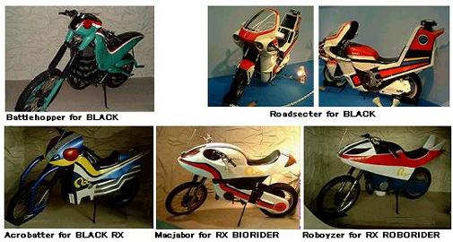 | 一方、バトルホッパーはもう1人の世紀王候補・シャドームーンによって破壊されますが、ゴルゴム壊滅後に現れたクライシス帝国の襲撃で窮地に陥ったBLACKの支援に駆けつけ、自己修復したものの再びクライシスの攻撃で破損してしまいます。BLACKは太陽の力によってキングストーンに変化を促し、BLACK−RXへと進化、この進化に呼応するように、バトルホッパーもまたアクロバッターへと再度の再生進化を遂げます。最高時速750kmでRXのテレパシーをキャッチしどこへでも駆けつけ、RXこと南光太郎と対話する知能を持っています。 アクロバッターは、クライシス帝国との激戦でパワーアップを続けるRXに追随し、歴代ライダーのマシンで唯一、単一車体で複数モードへの変身が可能。RXがバイオライダーモードに変身すれば「マックジャバー」に、ロボライダーモードに変身すれば「ロボイザー」にそれぞれチェンジします。 |