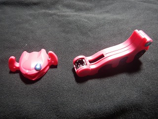 下段左が制作したもの。右はテール部分のみ縮小加工したもの。この時点ではテールの黒い部分などにある3色の円形パーツが塗装されていないため、やはりPC上で加工したものがトイズハンガーに出ている完成系だ。