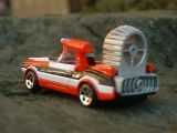 それにしても、ケレン味以外の何者でもないこのド派手な色と形。いやが上にも耳目を集めるのだが、それこそが早川のねらい。月面探検車がベースとはいっても、原子力エンジンを積んでいるなどという噂は、彼が流したはったりに違いない。 その張ったりが通用するのは、このズバッカーに飛行能力があるからだろう。 普通、クルマは空を飛ばない。しかしその盲点を突いて、目の前で「フライトスイッチ、オン」などとキメ台詞を放ち、空に舞い上がって宙返りまでしてしまえば、追いつめられた犯罪者は噂を真実だと思い込む。そこへ早川自身のなんでもござれの芸達者ぶりを見せつけられるのだから、とどめを刺される頃にはすっかりペースにはまってしまう。 こうして警察機構に引き渡された犯罪者の自供に混じって伝わる口コミは、怪傑ズバットの恐ろしさを社会に広めていくのである。その情報はダッカー内部にも蔓延し、飛鳥を殺害した犯人を心理的に苦しめるのだ。 ズバッカーは、その役目を十二分に果たしている。一見、無駄と思われる存在なのだが、5分間しか着装できない不完全なズバットスーツを身につけていながら、わざわざズバッカーを遠隔操作で呼びつけるか、自ら運転するかで現れ、犯罪者に飛行能力を見せつけているだけの存在にしか見えない。 そこに生じる敵の隙を、早川は見逃さないのだ。 |